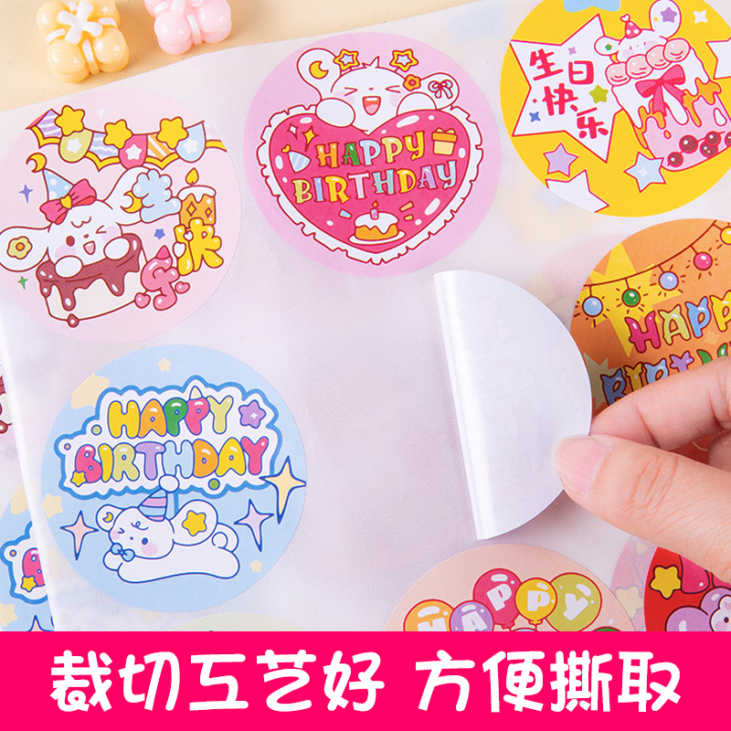 生日快乐贴纸大号谢谢你陪我过生日伴手礼物封口贴零食礼品袋子装饰仪式感礼物贴小图案不干胶贴画贴脸标签贴