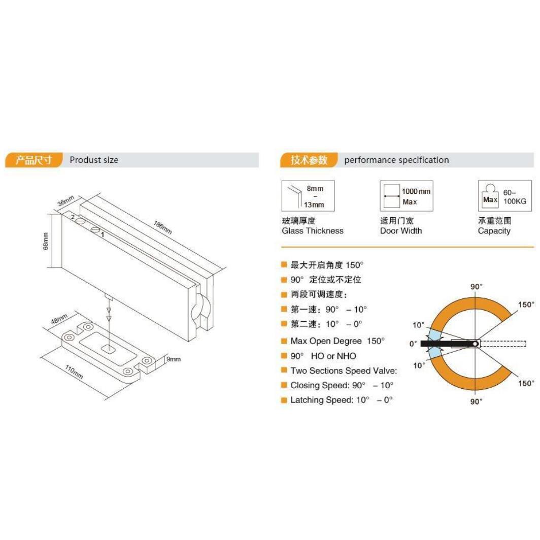 供应一体式玻璃门免挖坑地弹簧及304不锈钢90度定位闭门器