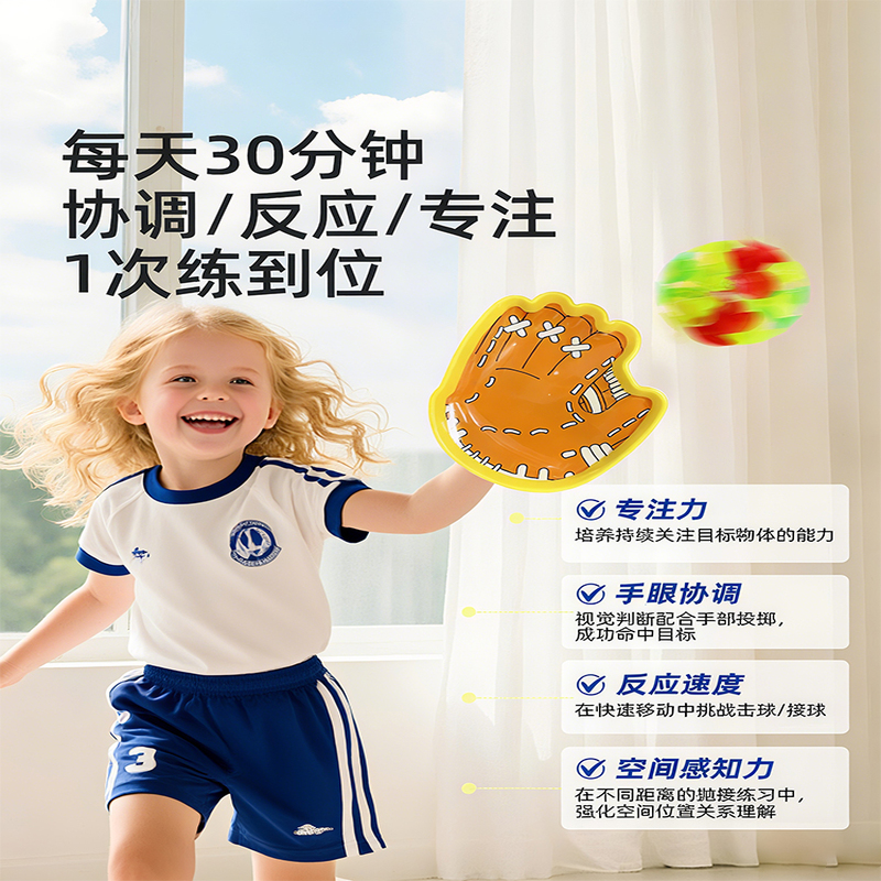 抛接球吸盘室内户外运动双人亲子互动球拍儿童玩具手抛球发光体力
