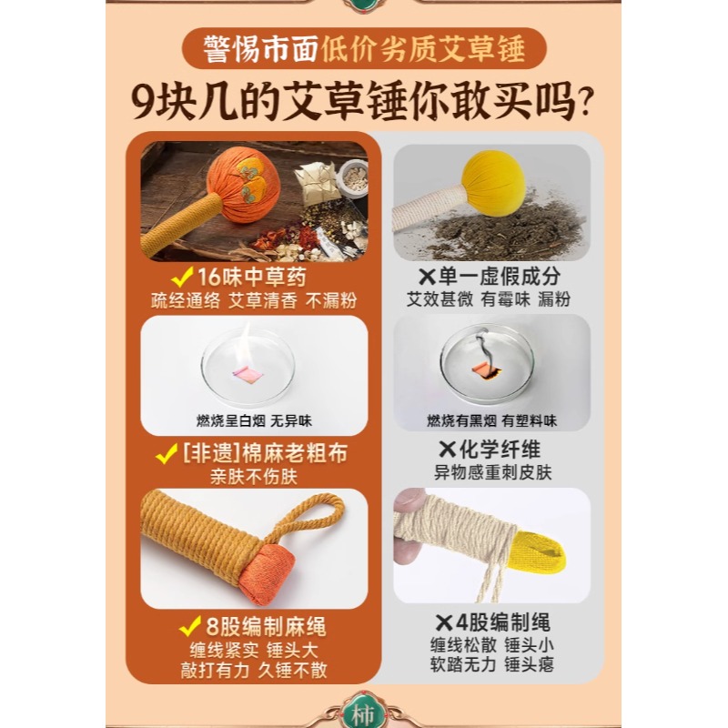艾草锤子养生按摩经络捶背敲打棒拍打八虚锤老礼物如意中医肩颈