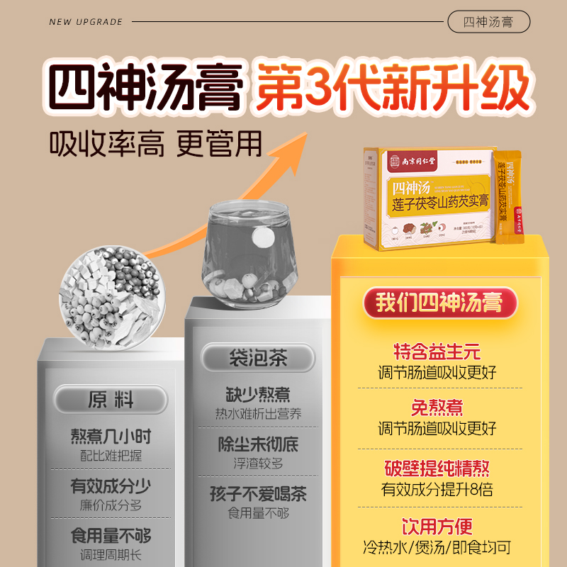 南京同仁堂四神汤健祛脾湿儿童调理莲子芡实山药茯苓脾胃茶包免煮