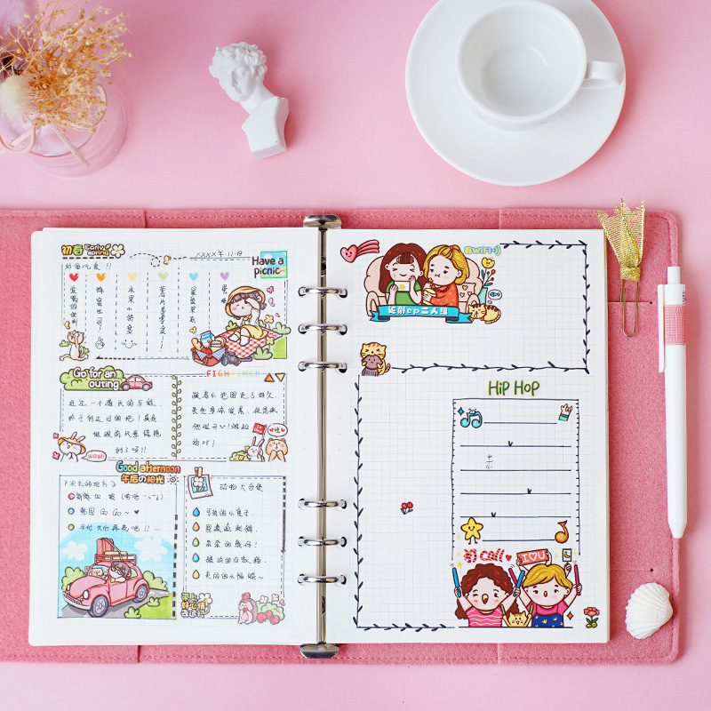 A5全系列活页内页纸 6孔手账笔记本圆点英文备忘财务方格横格康奈尔空白日周月计划英文线牛皮纸黑卡替换内芯