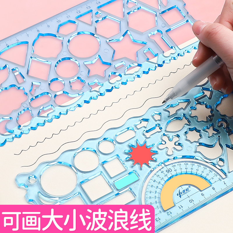 百变万花尺儿童多功能魔幻套装绘画直尺镂空画花曲线手抄报模板繁花图案尺子文具画圈画图形的带波浪线尺