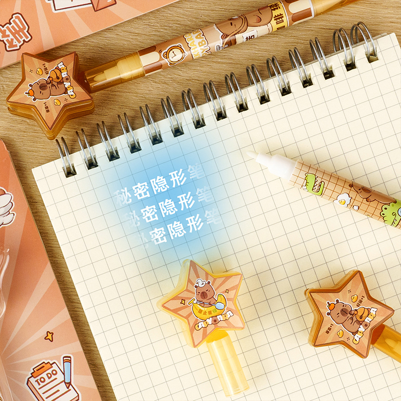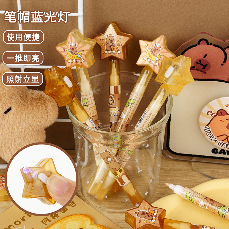 网红卡皮巴拉隐形荧光笔秘密中性笔双头书写灯照笔字迹消失记号笔随身夜光笔儿童高颜值带紫外线手电筒隐形笔