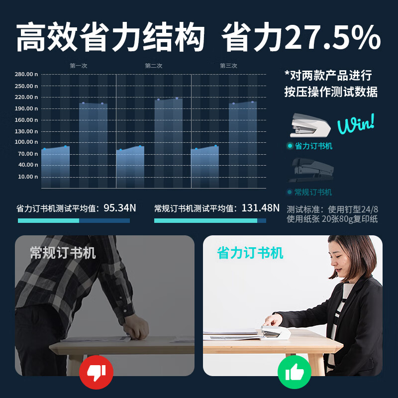 得力0368 省力型订书机适配24/6(12#)及26/6订书钉白色(不含钉)