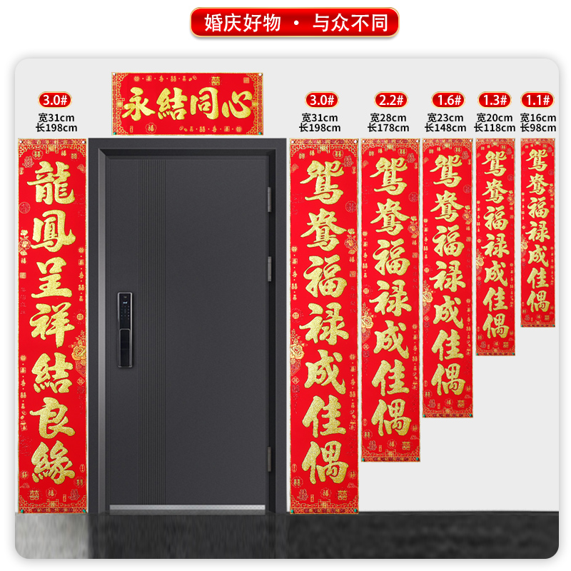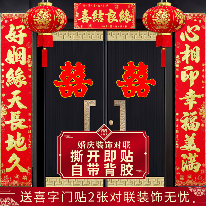 结婚对联绒布男方农村大门喜联婚房婚礼布置婚联女方出嫁买就送喜