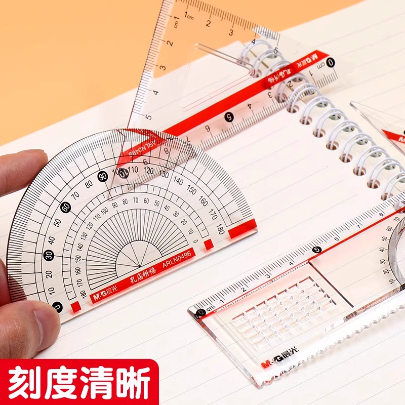 晨光文具孔庙折福学生套尺尺子四件套三角尺直尺格尺量角器套装透明亚克力材质多规格套装学生用考试几何工具