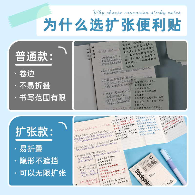 扩张便利贴初中生专用扩张贴便签纸便签本学生用考研扩展便利贴有粘性拓展便利贴笔记贴便利签可撕开学文具