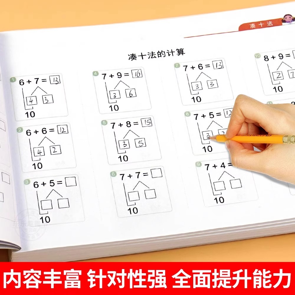 幼儿园小中大班学前班为一年级做准备大练习金牌数学专项训练凑十法破十法看图列算式10以内加减法10以内分与合解决问题