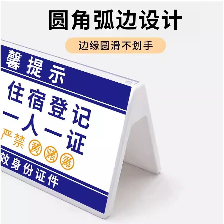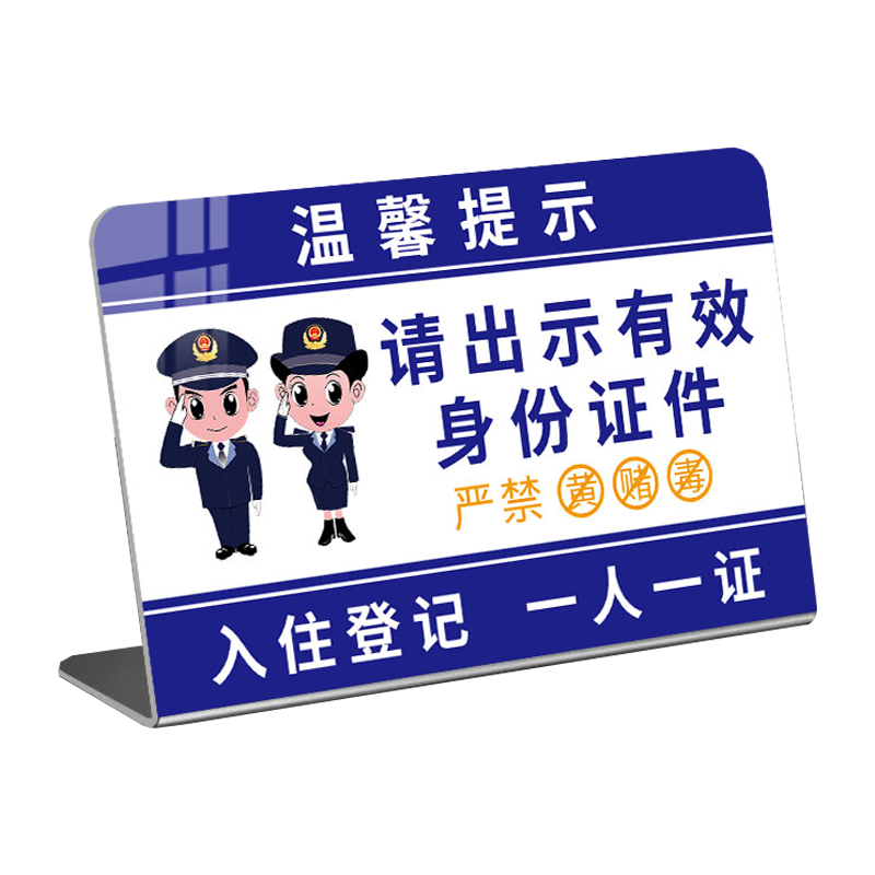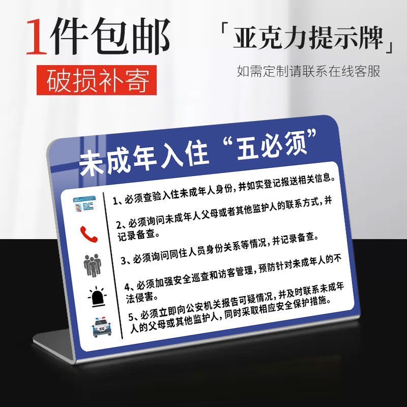未成年人入住五必须警示牌一人一证告示牌酒店前台入住提示牌亚克力桌面摆台入住登记标识牌温馨提示牌子定制