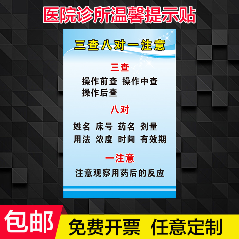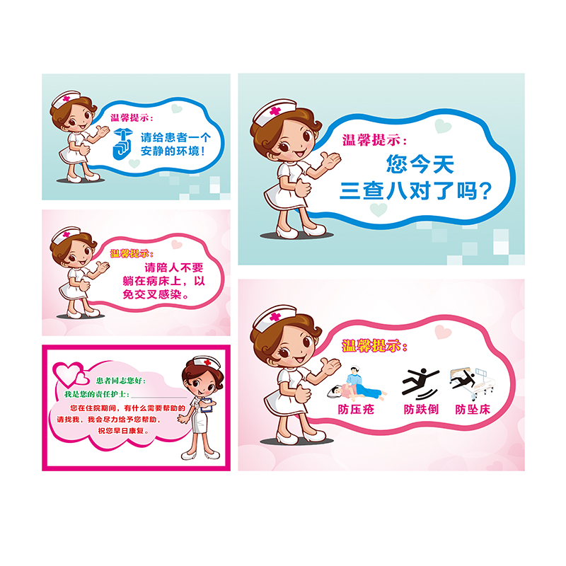 医院诊所护士温馨提示贴 今天您三查八对了吗 一注意 防压疮 防跌倒 防坠床 警示贴 避免交叉感染标志警示牌
