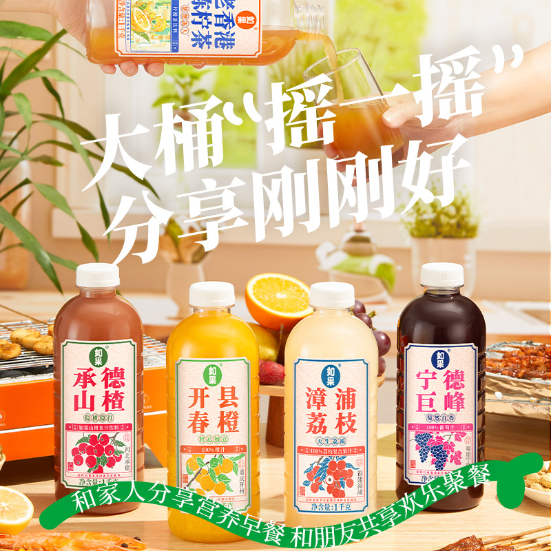 如果果汁漳浦荔枝冻柠茶橙汁葡萄饮料0添加防腐剂1KG/瓶山楂