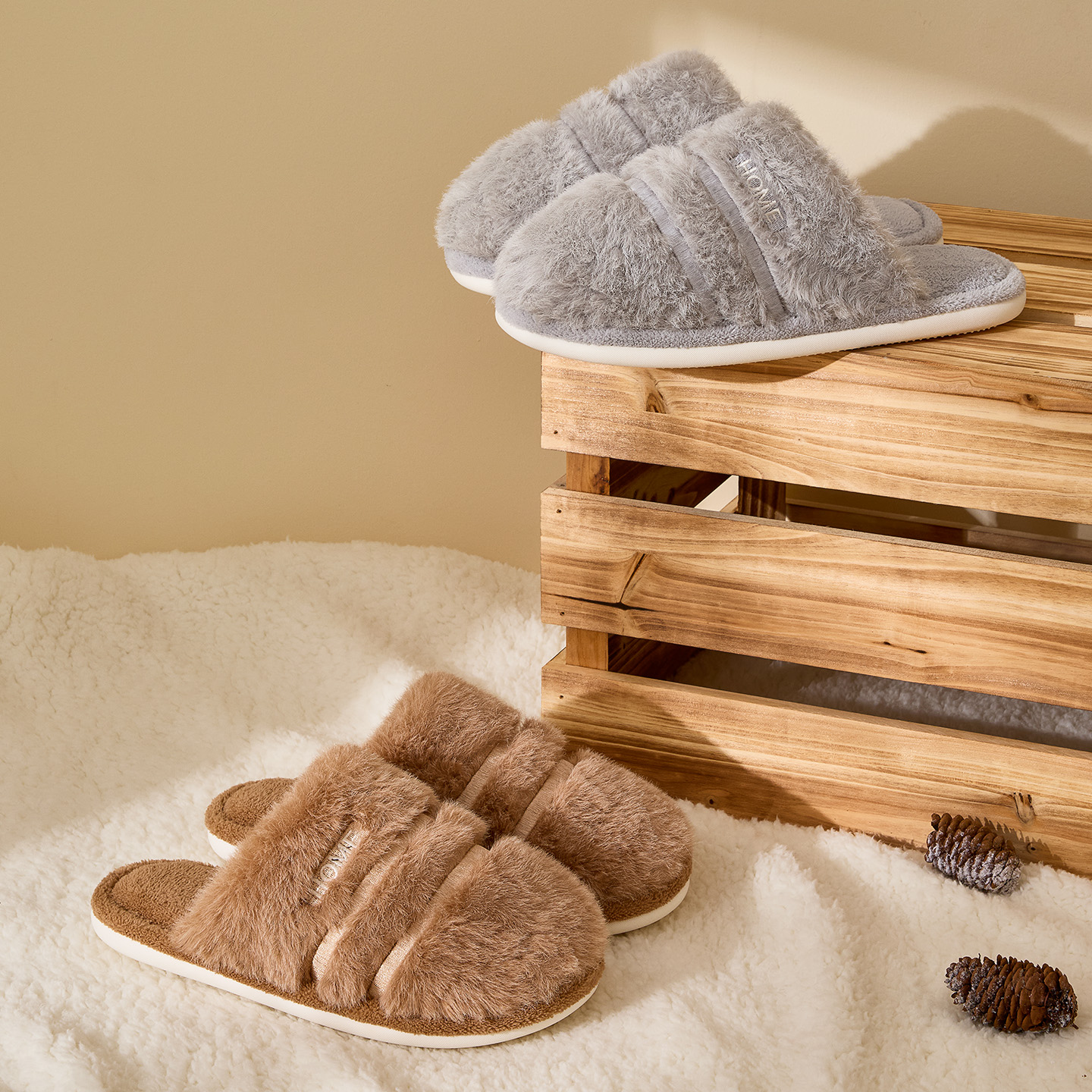洁丽雅棉拖鞋女款居家秋冬保暖加绒加厚包头防滑拖鞋男士冬天毛绒