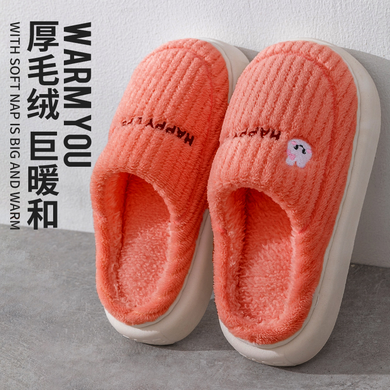 居家室内厚底踩屎感棉拖鞋西瓜红多规格