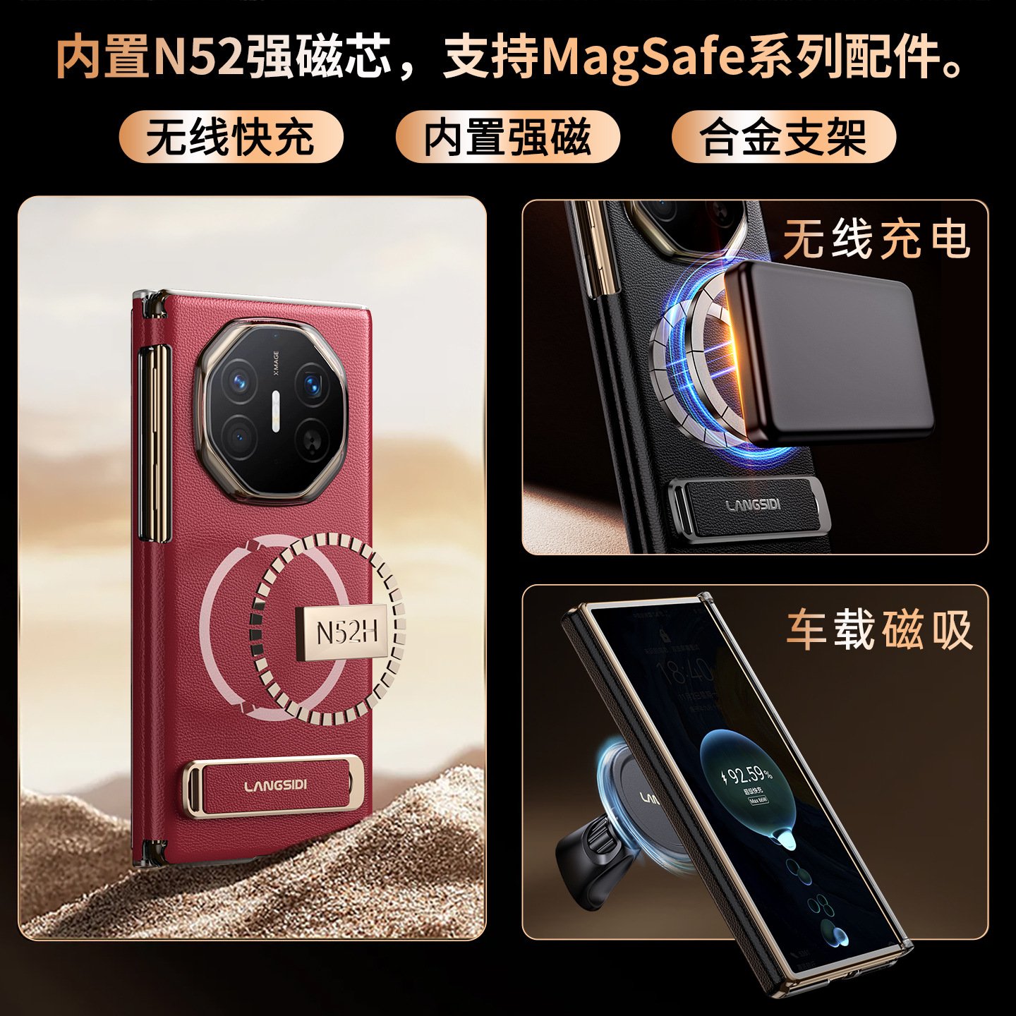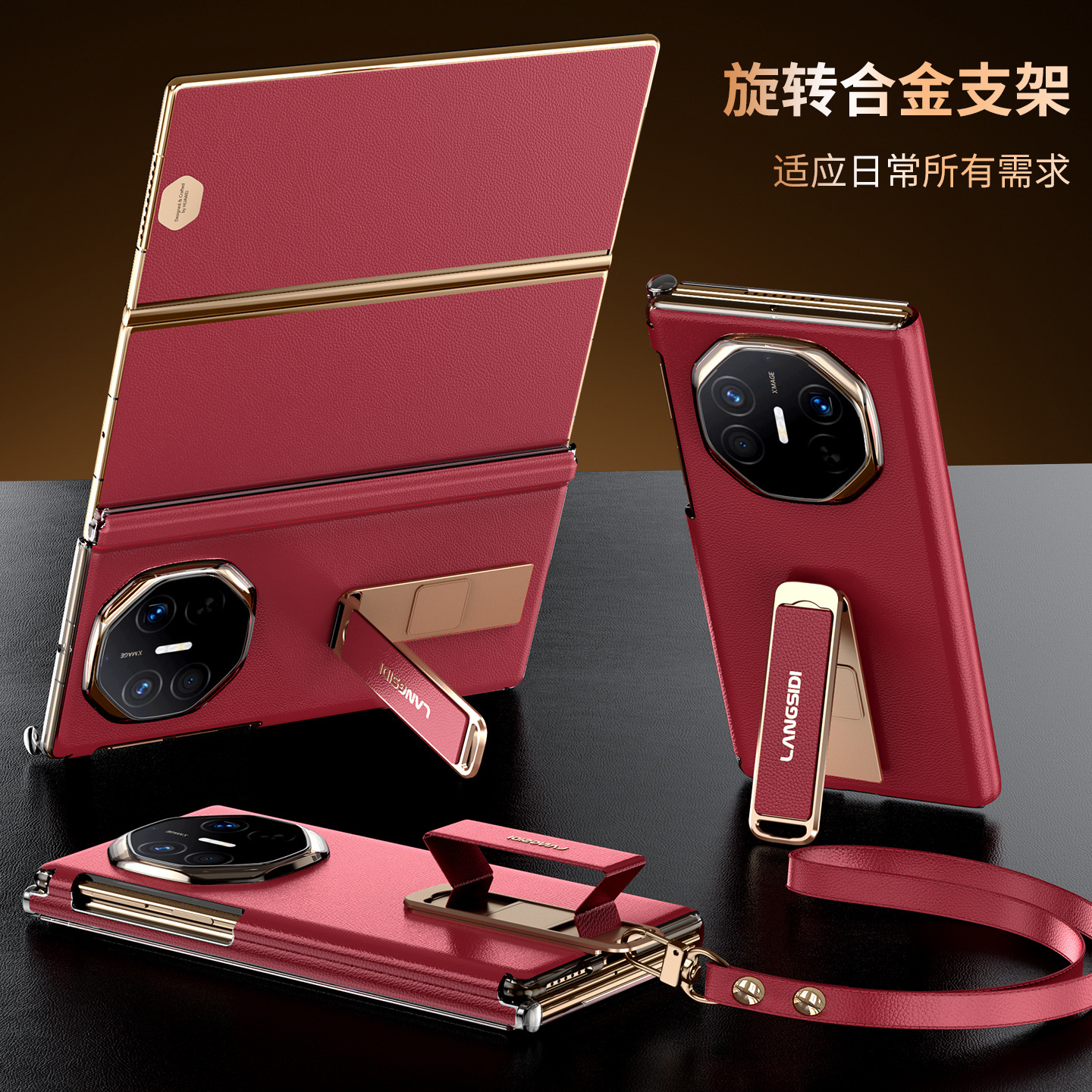 皮套壳适用华为matexts非凡大师手机壳新款三折叠屏XT腕带支架红色旋转素皮中轴防摔保护套高级感超薄外壳