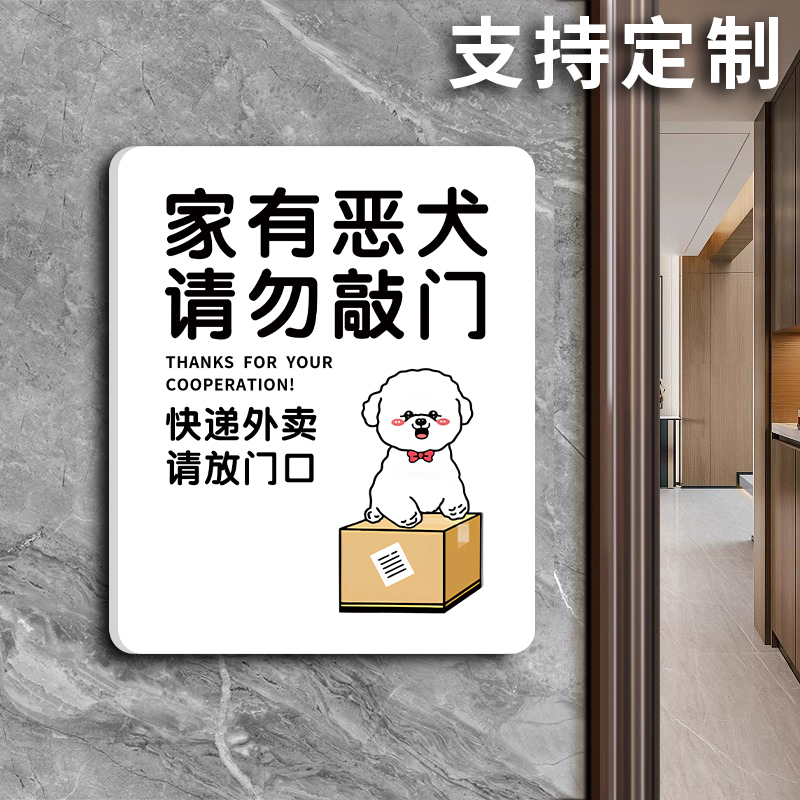 家有恶犬请勿敲门外卖放门口指示牌夜光快递放门口屋内有狗不要敲门提示牌子内有恶犬警示牌家有宠物门牌定制