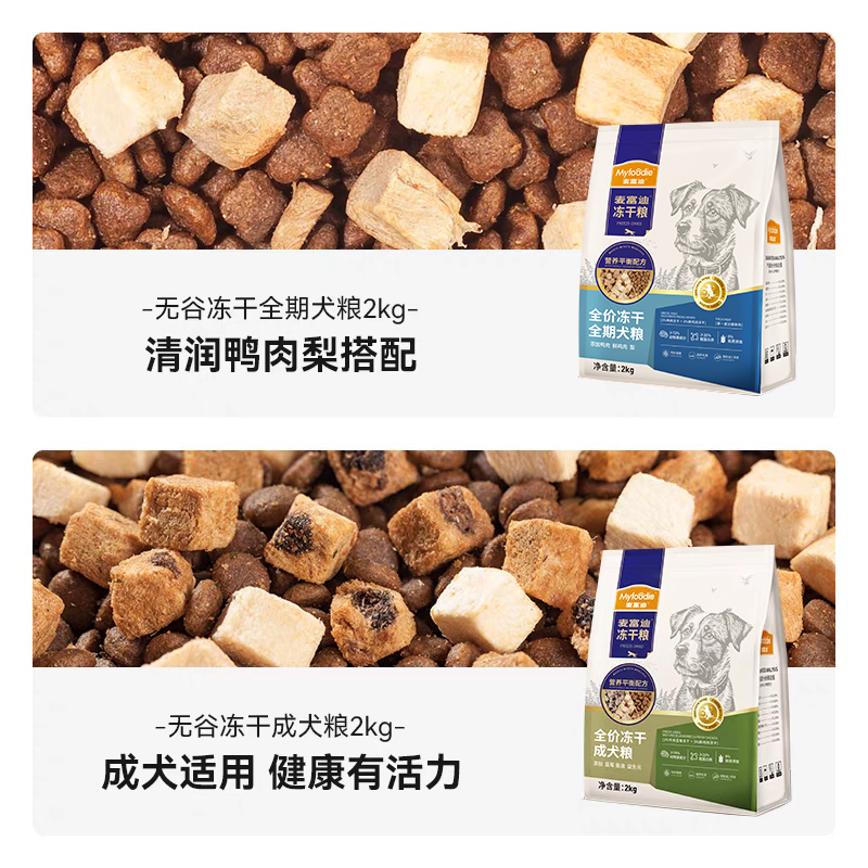麦富迪狗粮鸭肉梨冻干双拼成犬幼犬粮小型犬无谷牛肉蓝莓全期犬粮