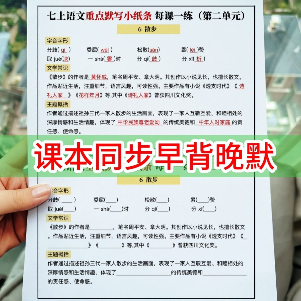 2025秋季新七上语文同步点人教版写作指导早背晚默A4彩印