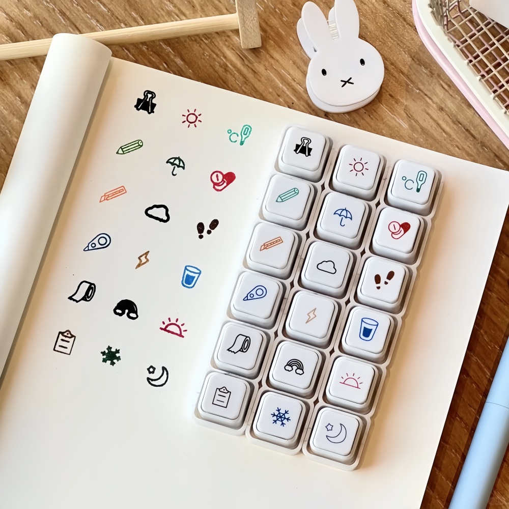 可爱六联印章按钮迷你印章高颜值手帐diy素材装饰打卡趣味装饰章