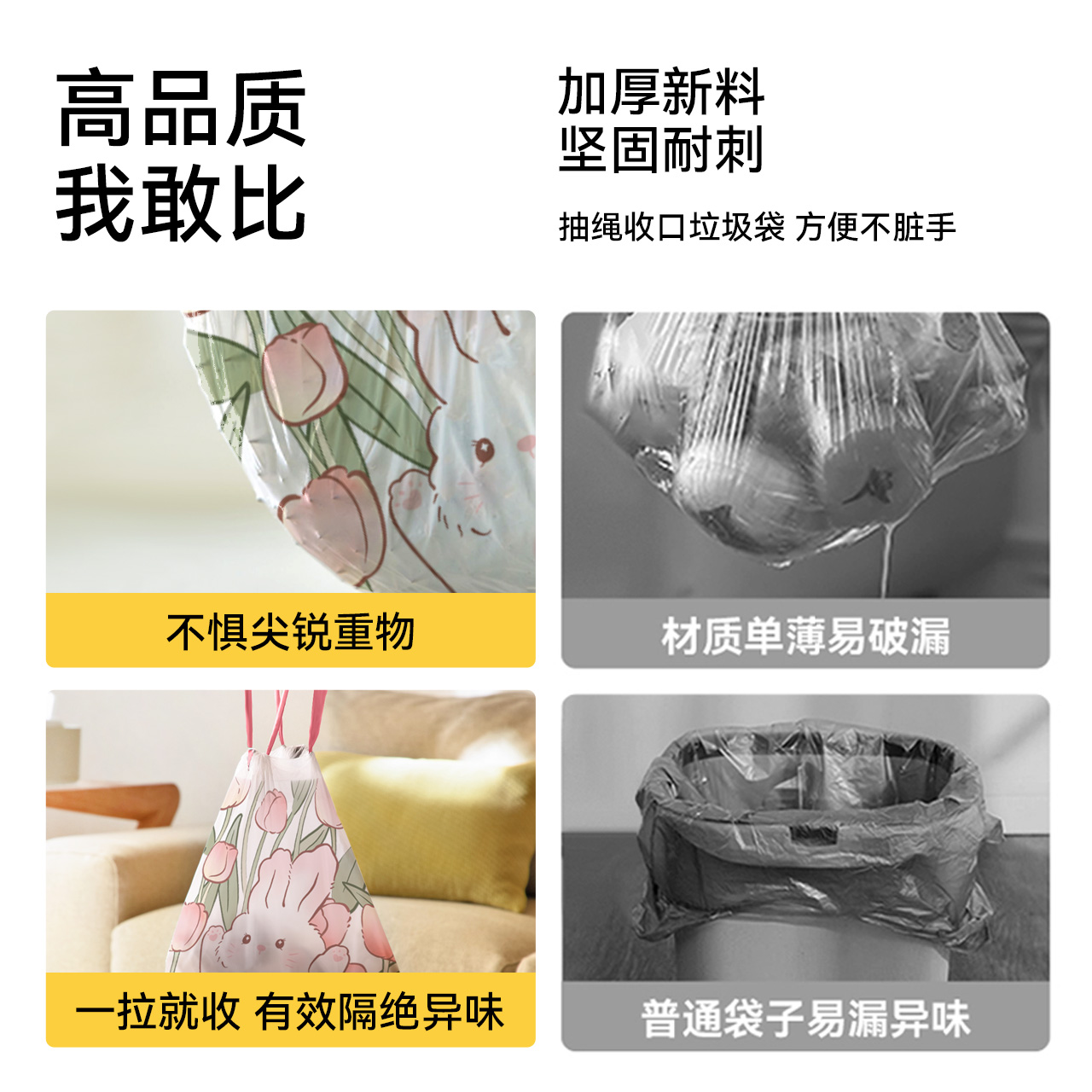 抽绳垃圾袋加厚手提式厨房家用宿舍大号塑料袋厨余清洁袋自动收口
