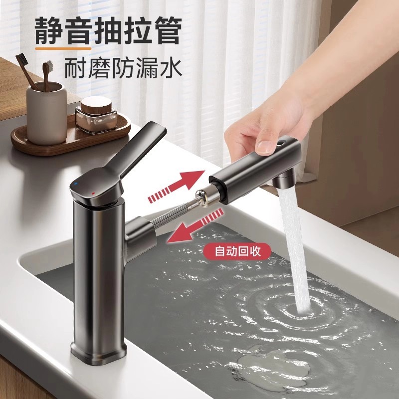 洗脸盆水龙头冷热两用抽拉式全铜卫生间浴室柜洗漱台面盆单冷家用