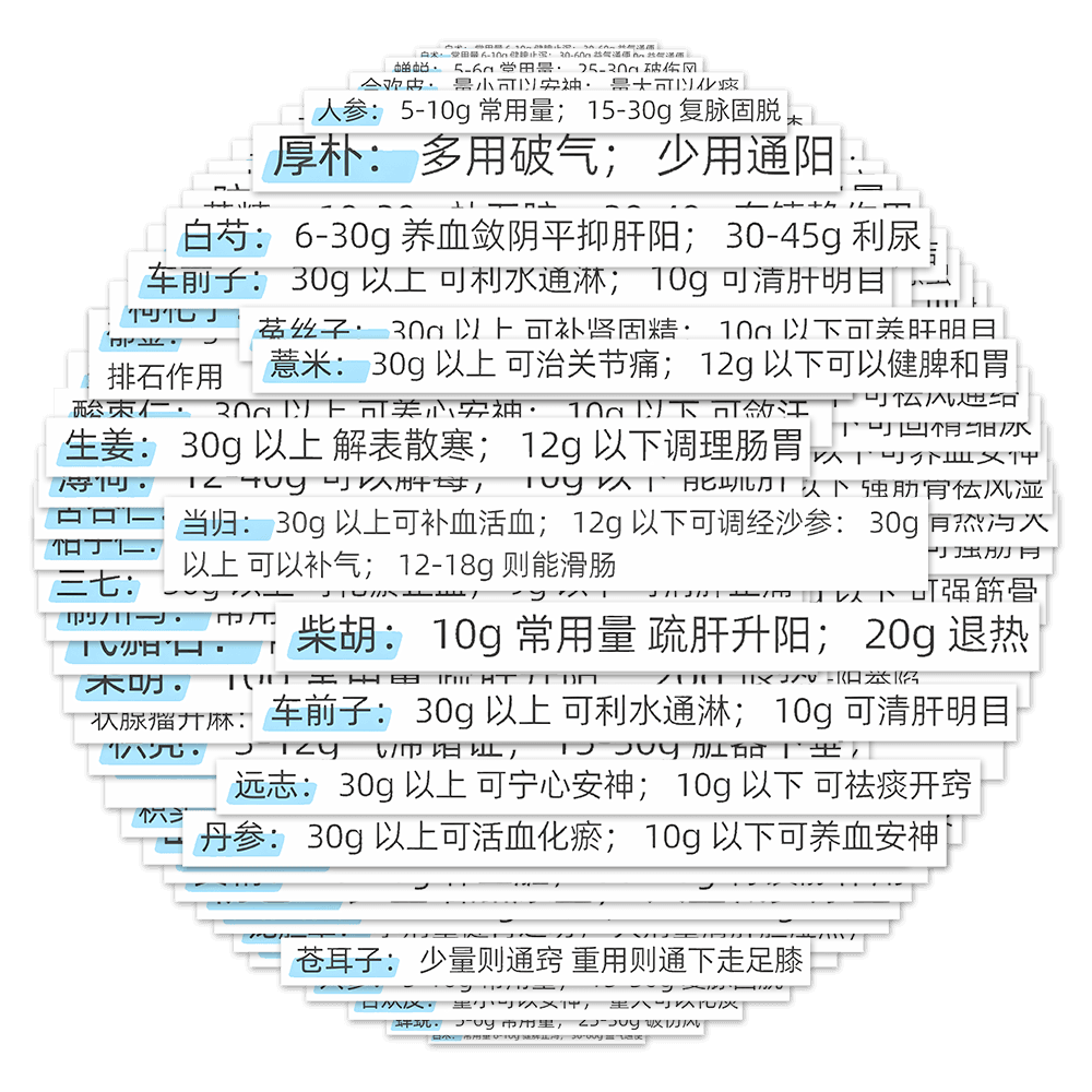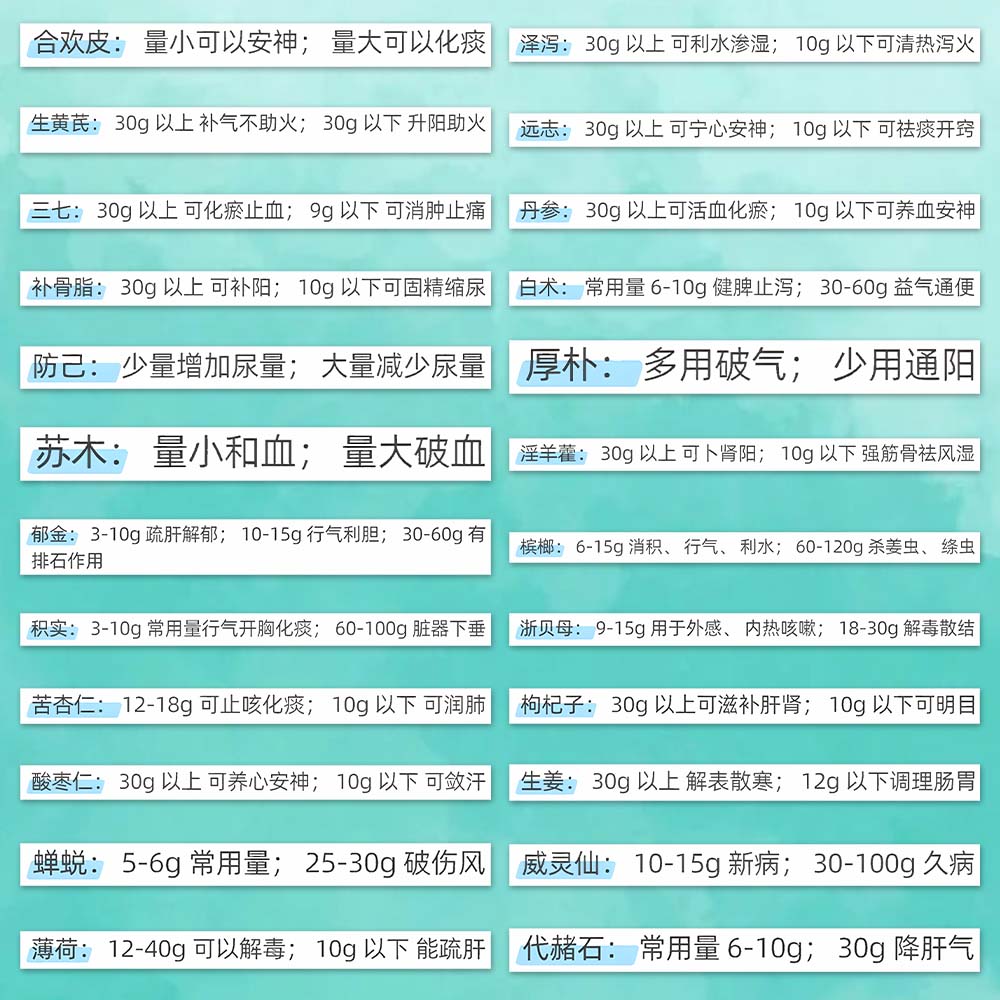 96张中药用量总结医学生药材功效作用基础知识笔记汇总高清贴纸