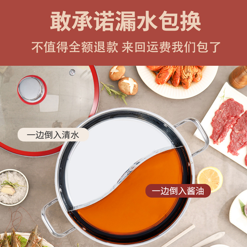 304不锈钢鸳鸯锅清汤锅火锅家用加厚大容量电磁炉专用商用火锅盆