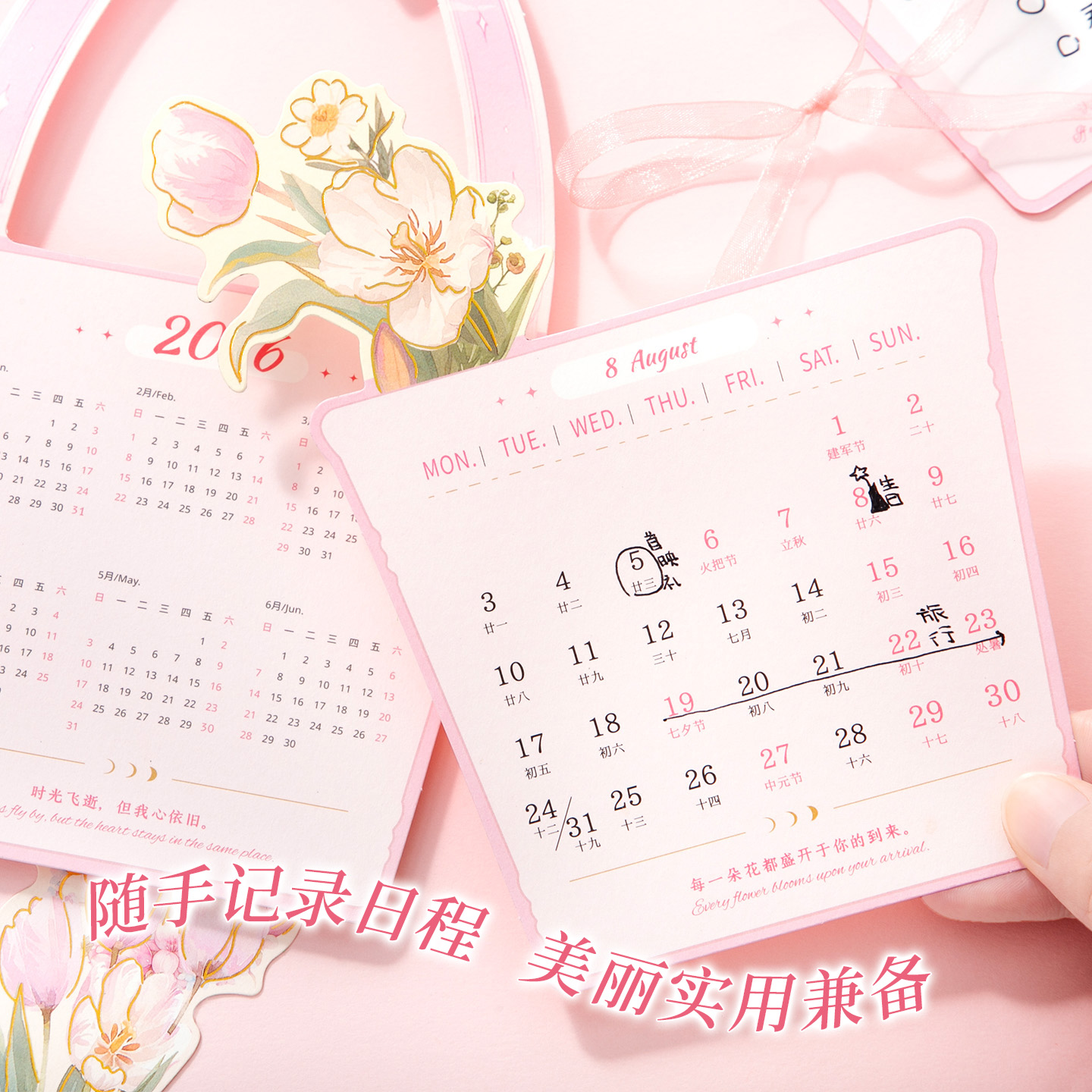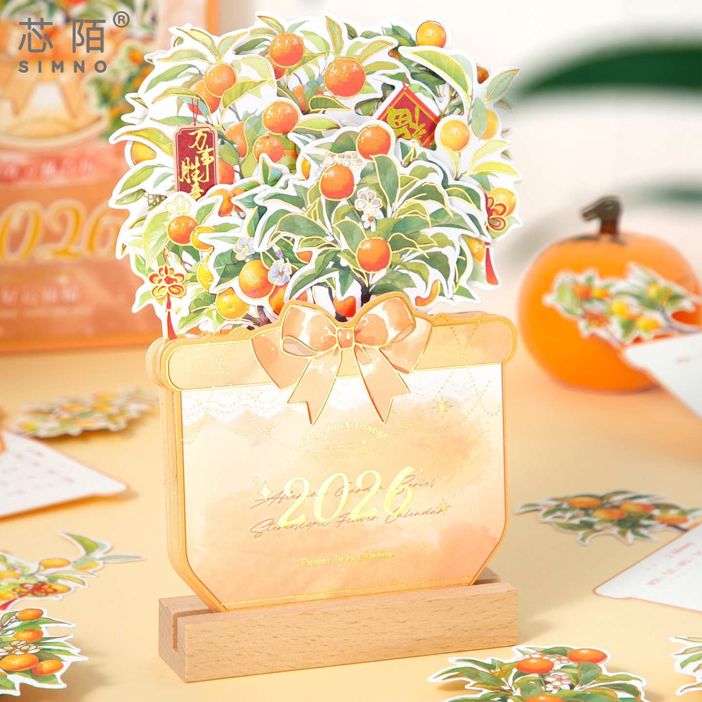 芯陌2026年新款花卉木质台历文艺清新花束日历立体插画日程计划表创意办公桌面摆件教师节送礼月历