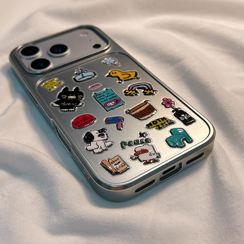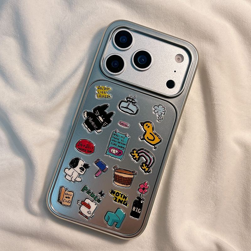 高级电镀银立体DIY贴纸适用苹果17promax手机壳16pro新款iphon17卡通15pro女款15硅胶14防摔13创意小众全包软