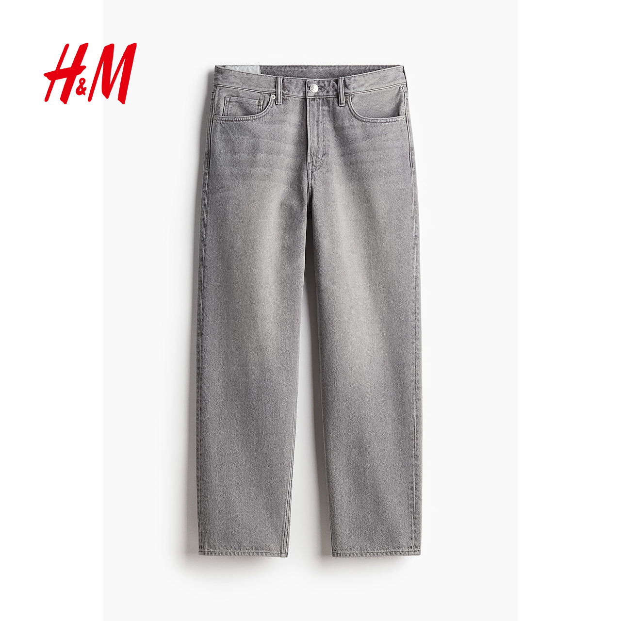 HM男装牛仔裤秋季中腰阔腿加厚棉质宽松直筒休闲裤0979945