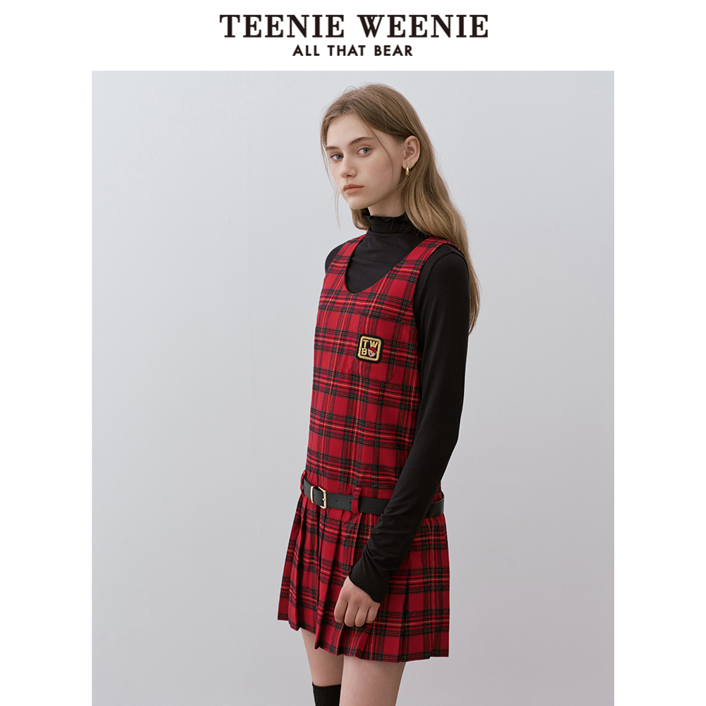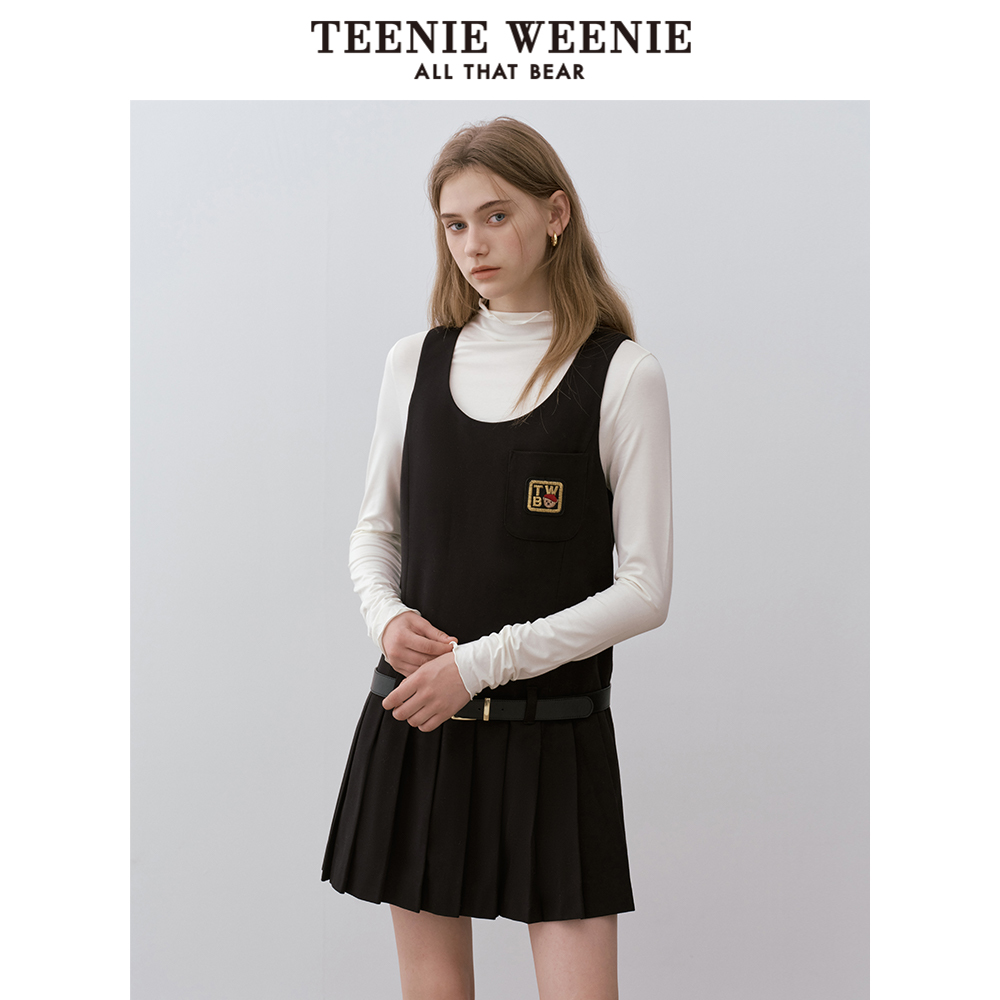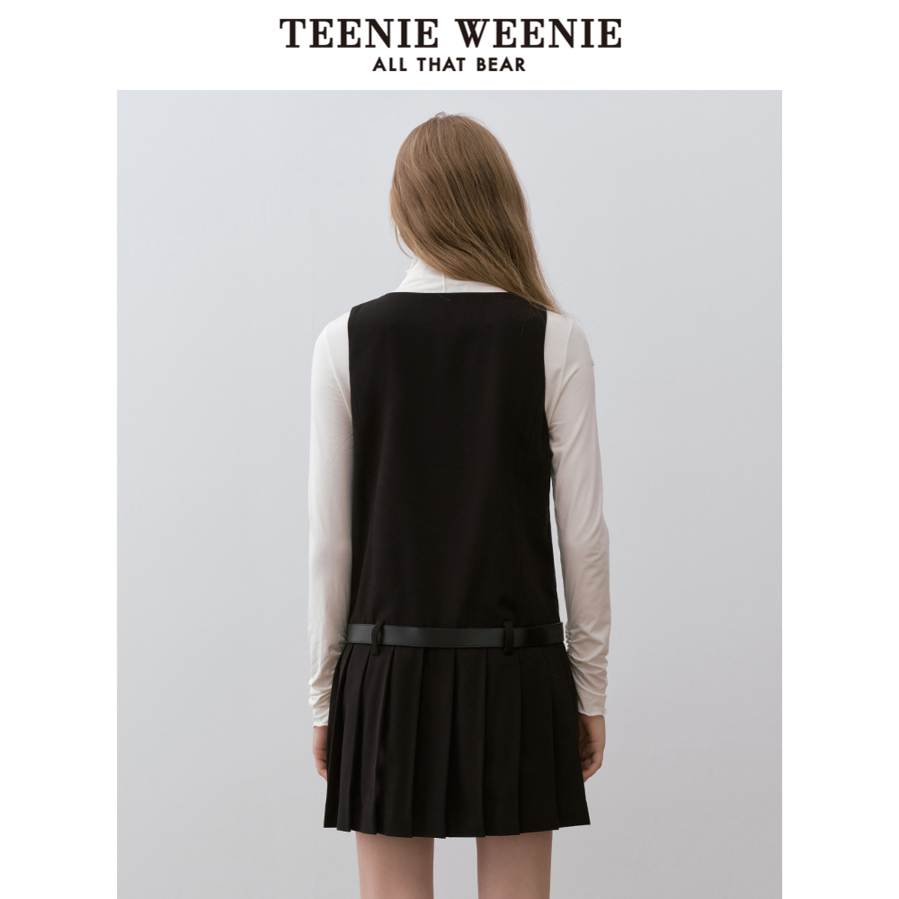 TeenieWeenie小熊女装连衣裙冬季圆领定制皮腰带背心裙子