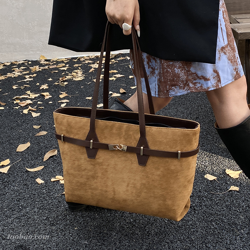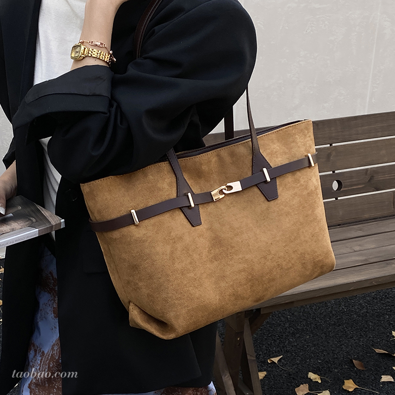 简约复古大容量包包女2025麂皮绒单肩包通勤手提包托特包性价比