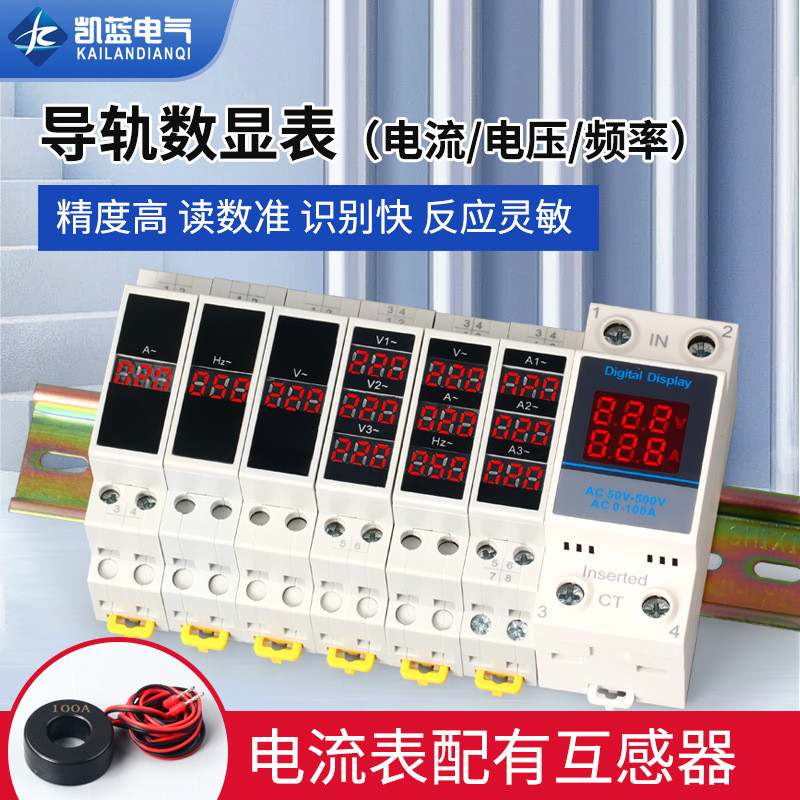 卡导轨安装式电压表数字单相数显交流电流表频率表220v380v三相A