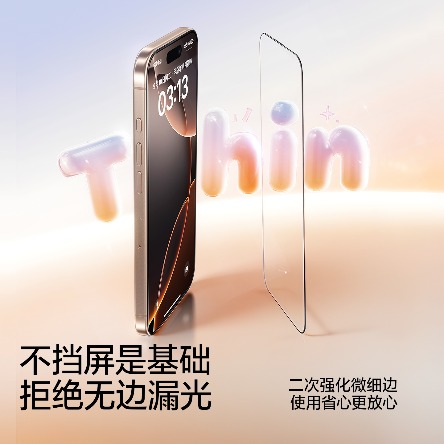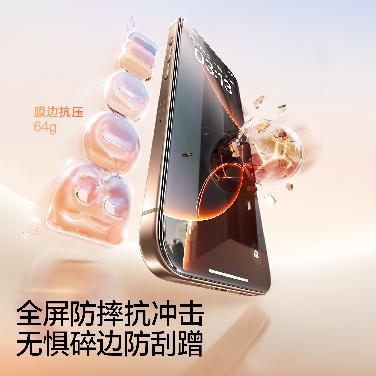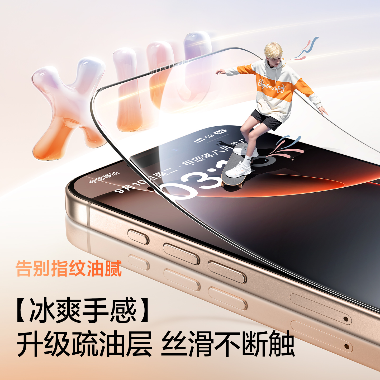 图拉斯无界膜AR抗反射适用苹果17钢化膜iPhone17promax手机贴膜16pro无黑边防摔保护15屏幕无尘仓ip防指纹ar