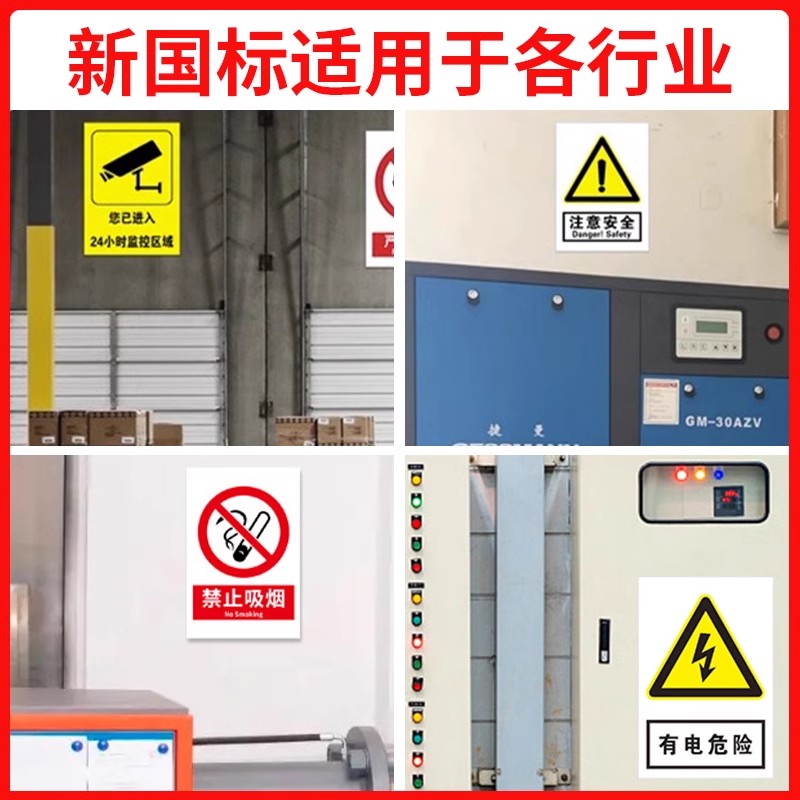 安全标识牌贴纸工厂车间施工安全生产标识牌当心触电标识有电危险警示贴监控区域禁止吸烟提示牌消防标警示牌