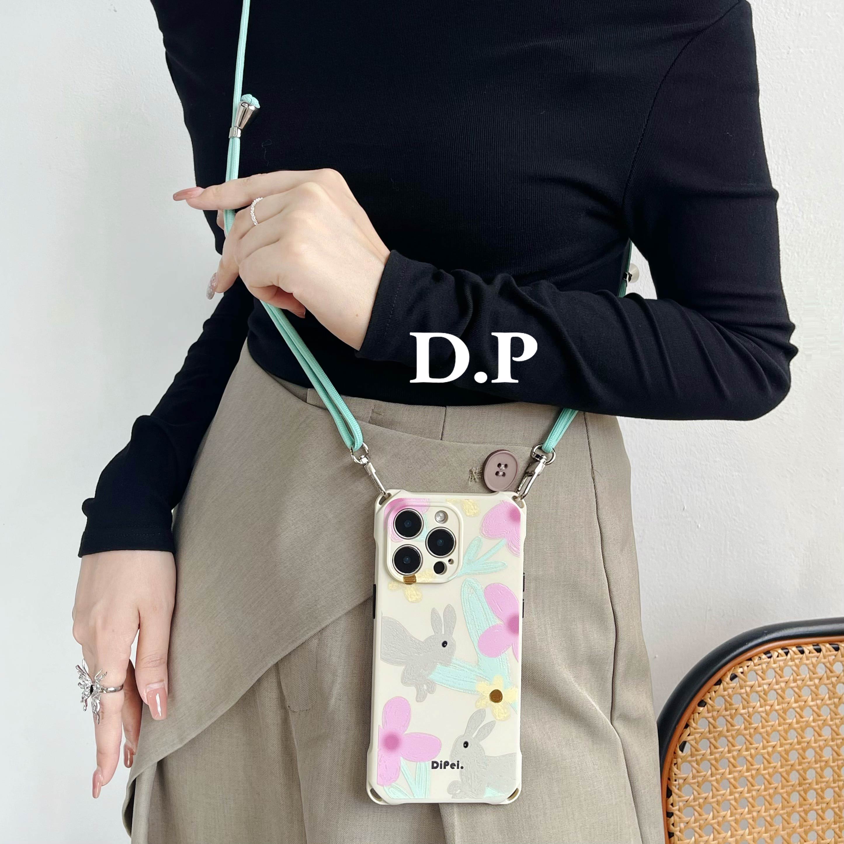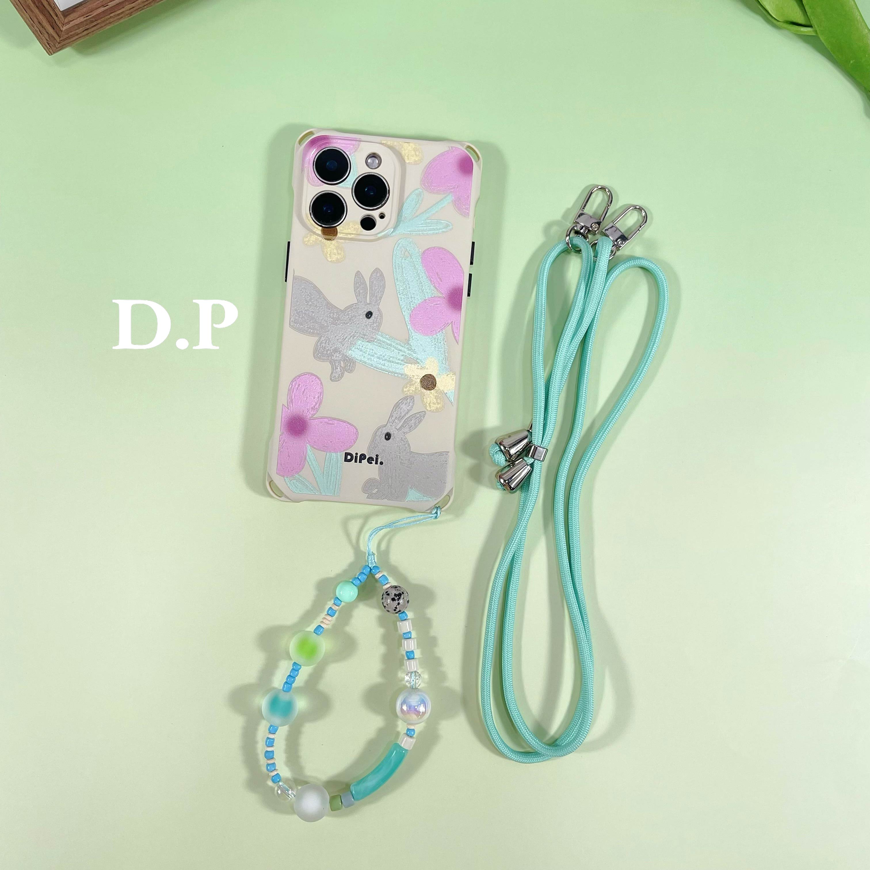 ins风油兔花挂绳手机壳适用vivo苹果iPhone16promax华为mate70荣耀200小米15斜挎侧背式手提链条清新复古百搭