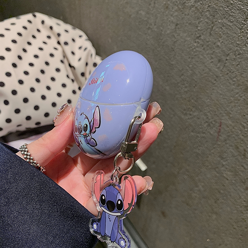 适用华为freebuds5保护套Freebudspro4/pro3可爱卡通freebuds7i/6i蓝牙SE3耳机套freeclip蓝色史迪仔挂件4/4e
