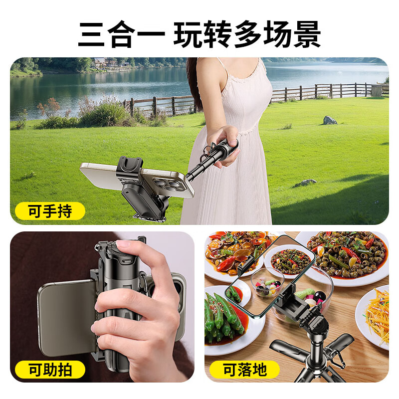 蓝牙自拍手柄三脚架手持稳定可伸缩助拍器四合一拍摄自拍杆2025旅游便携多功能vlog摄影配件视频变焦拓展神器