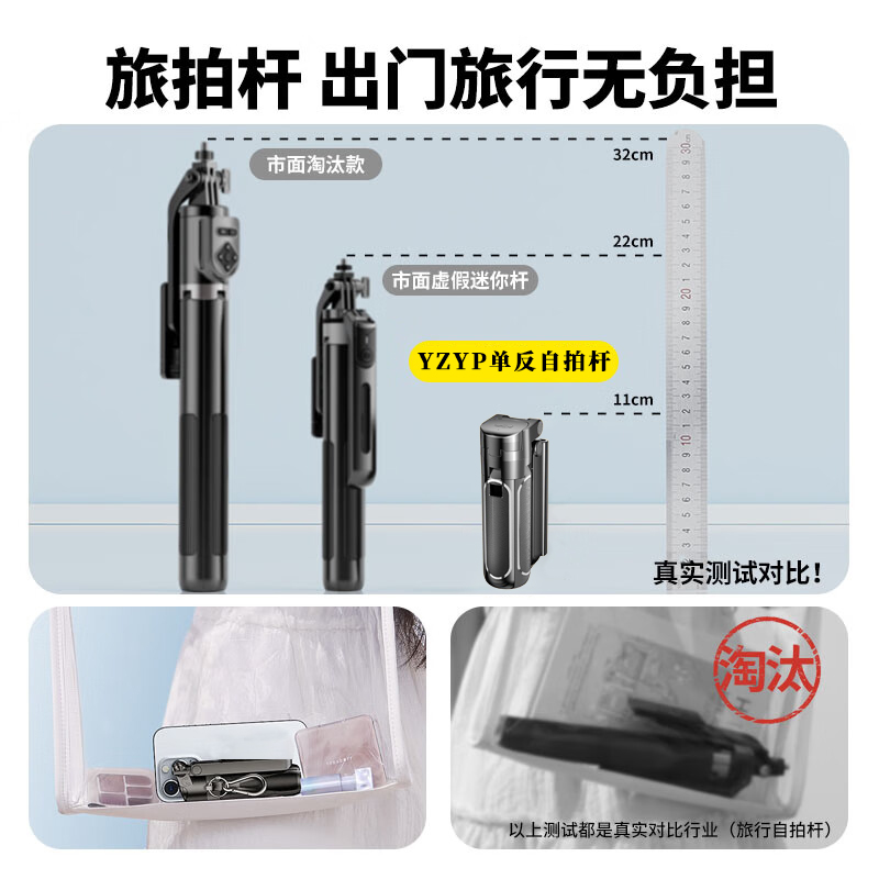 YZYP迷你自拍杆2025新款手机通用落地三脚架旅游便携一个人拍摄vlog自拍神器360度旋转手持防抖云台直播支架