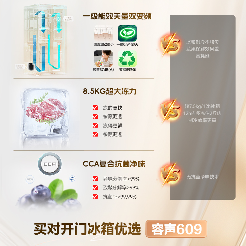 容声609L对开双开门大容量风冷家用一级无霜嵌入冰箱以旧换新补贴
