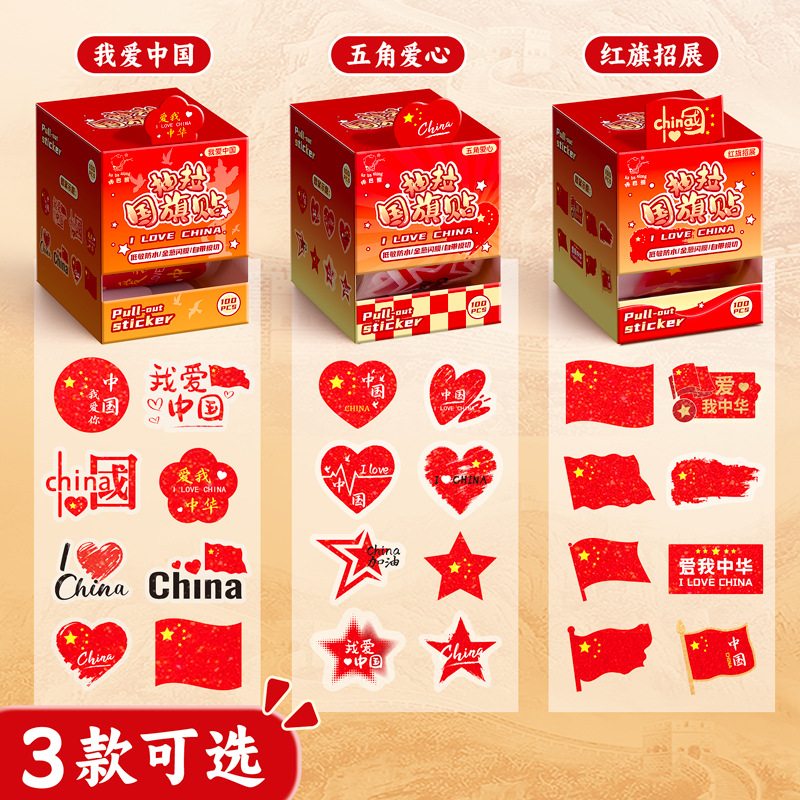 红旗贴纸贴脸爱心国旗脸贴在脸上贴小国旗球迷贴画儿童logo贴衣服装饰纹身贴学生旗贴标签场景五角星防水抽拉