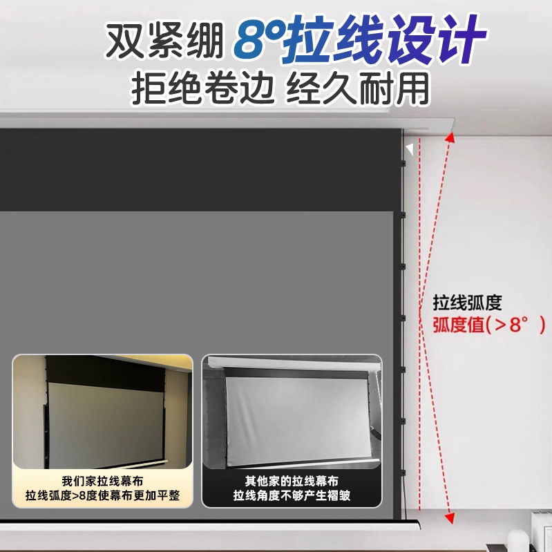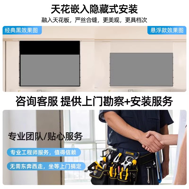 嵌入式隐藏天花悬光子悬浮幕适用于坚果当贝爱普生100寸120寸电动拉线菲涅尔抗光幕布家用自动升降投影仪