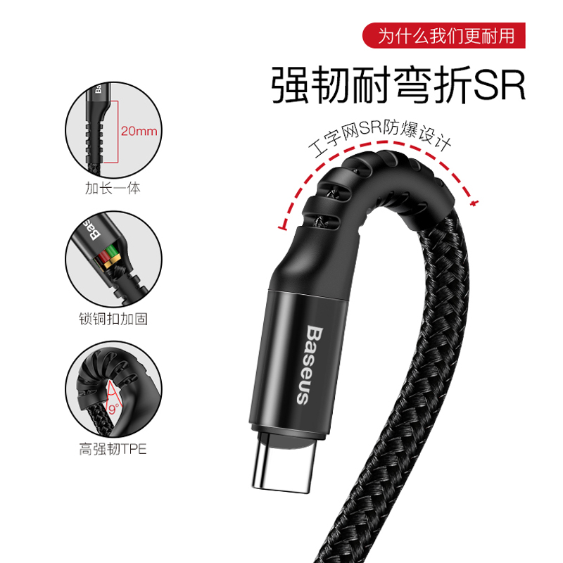 倍思数据线三合一充电线器一拖三快充三头适用多头车载苹果Typec充手机车超级车用汽车USB伸缩多功能多用电器