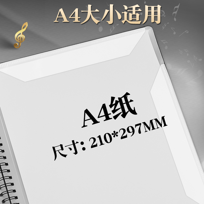 乐谱夹钢琴谱夹子专用文件夹曲谱夹乐谱收纳册音乐琴谱册歌谱子乐曲合唱谱曲夹a4黑色不反光可修改谱架子鼓