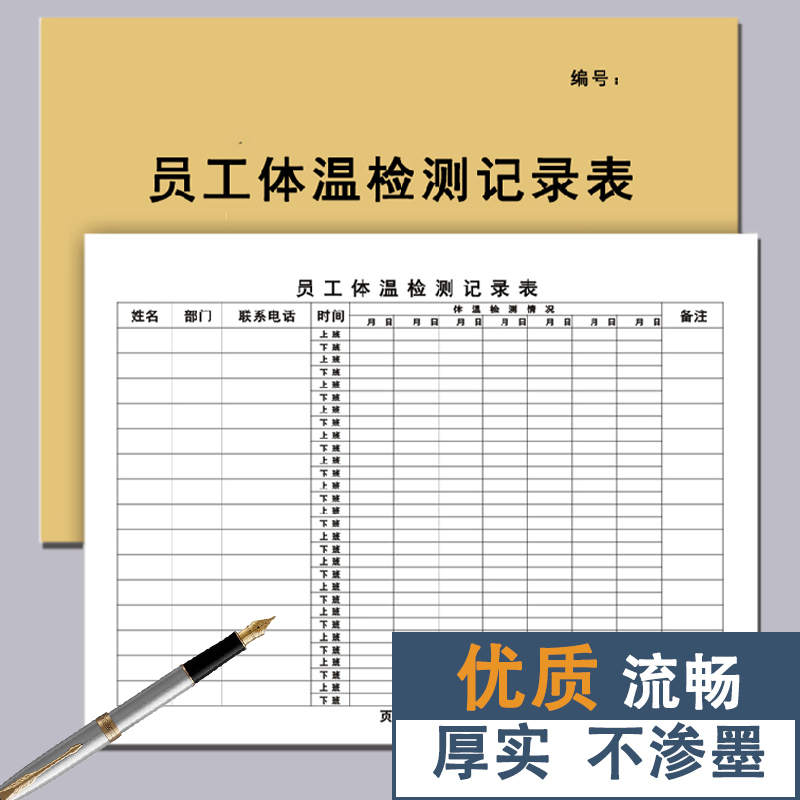 员工体温检查记录本小学生体温表工人体检登记本预防社区测量体温登记防疫表体温检学校消毒物资领用登记簿