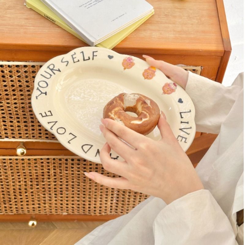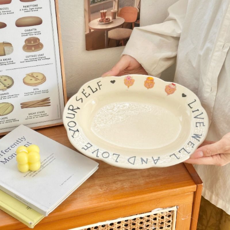 穆尼 ins漫画风餐具奶油色水果盘子深盘沙拉意面盘家用碗菜盘碟子