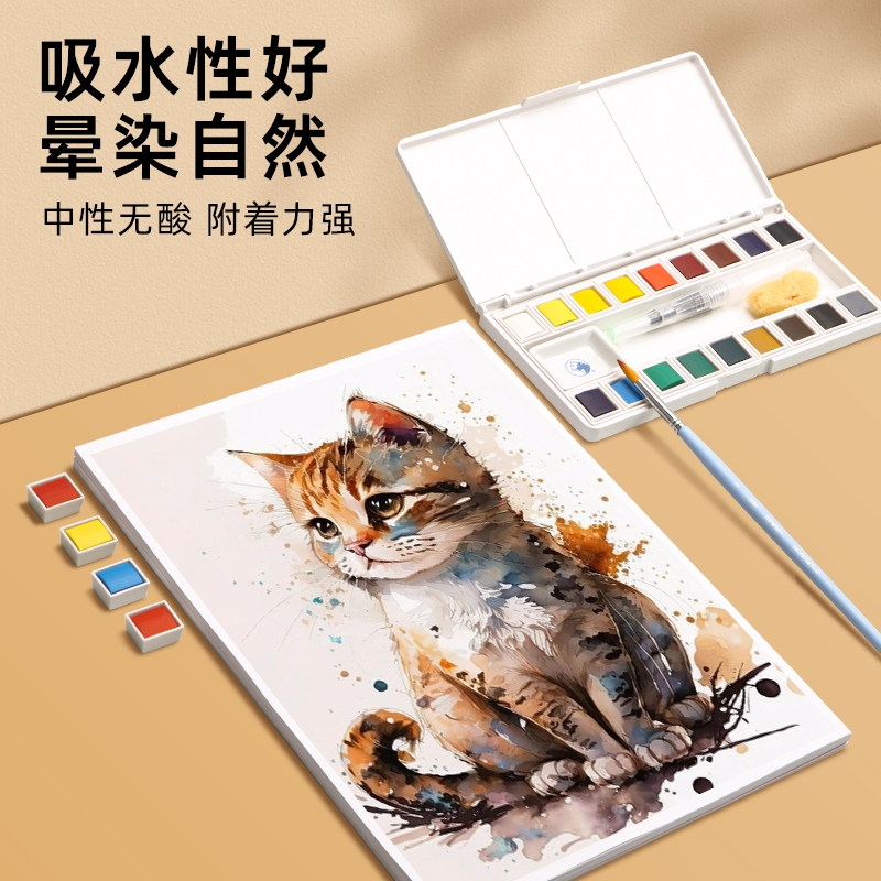 马利水彩纸美术专业绘画纸8k4k200g练习初学者儿童美术生专用纸四开八开水彩颜料细纹中粗纹画画纸官方旗舰店
