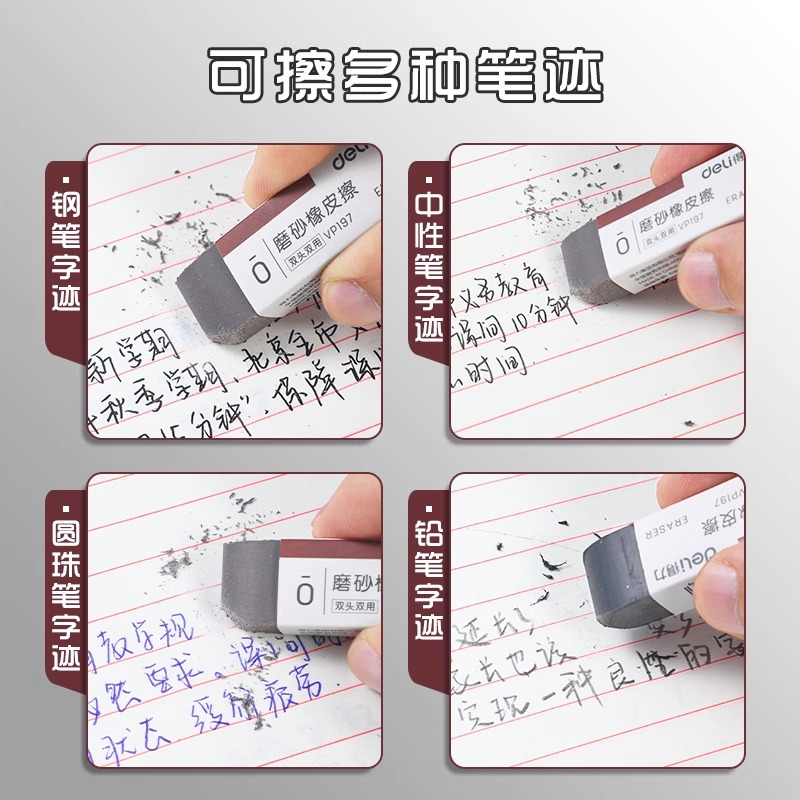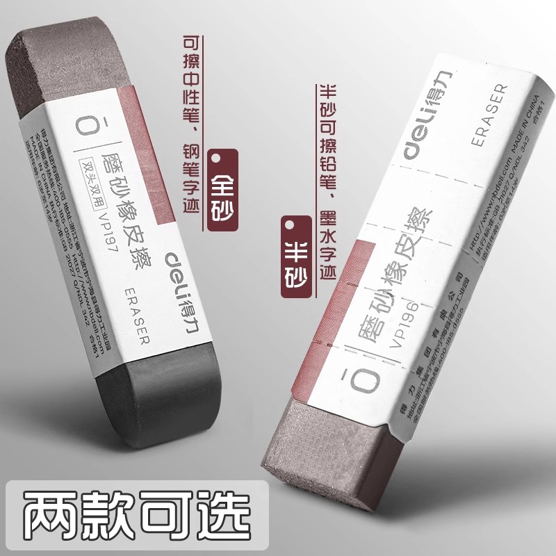 得力磨砂橡皮擦钢笔橡皮擦学生专用可擦碳素笔中性笔水笔圆珠笔铅笔两用擦得干净不留痕半砂魔力擦钢擦沙像皮