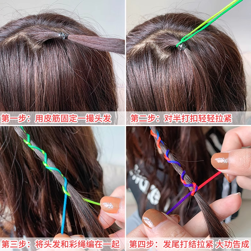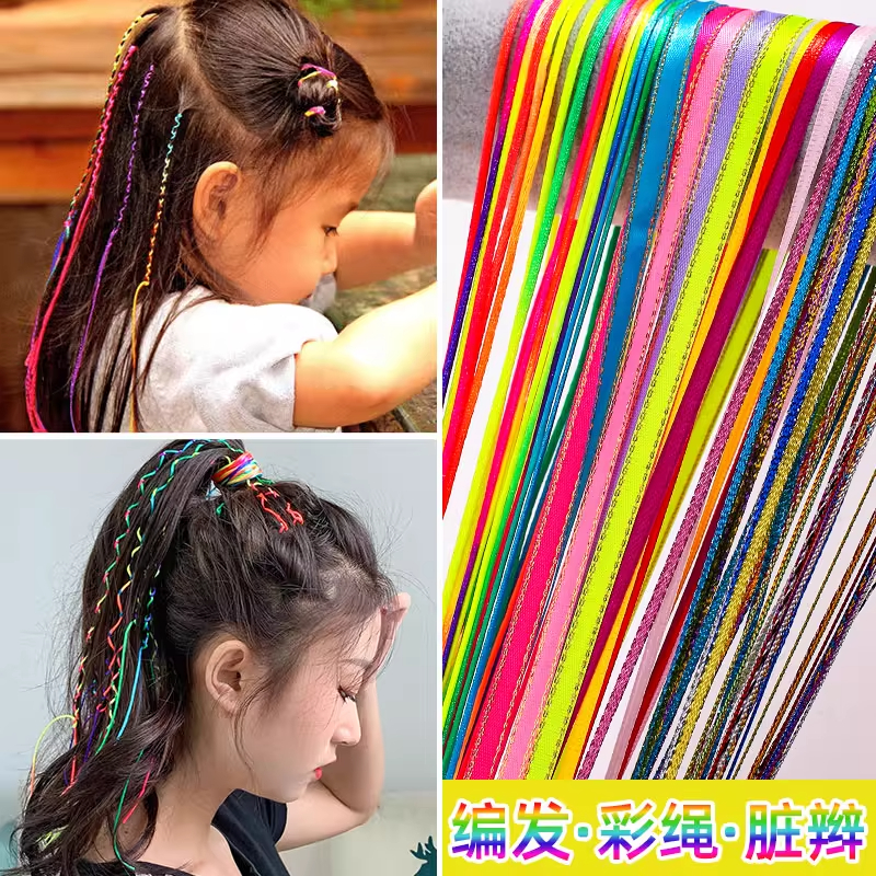 彩色编发彩绳脏脏辫马尾儿童编发丝带彩带头饰飘带扎发头绳