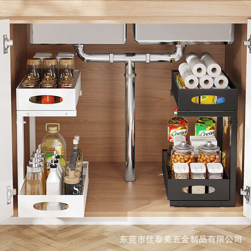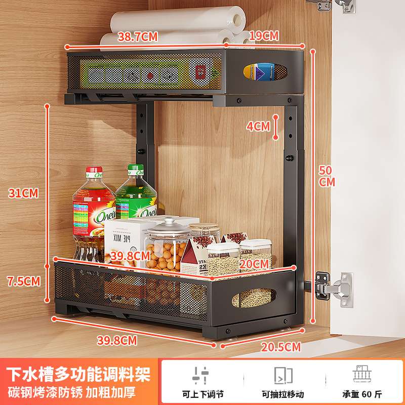 下水槽置物架分层抽拉式抽屉架子双层可调节洗漱用品水槽下方收纳